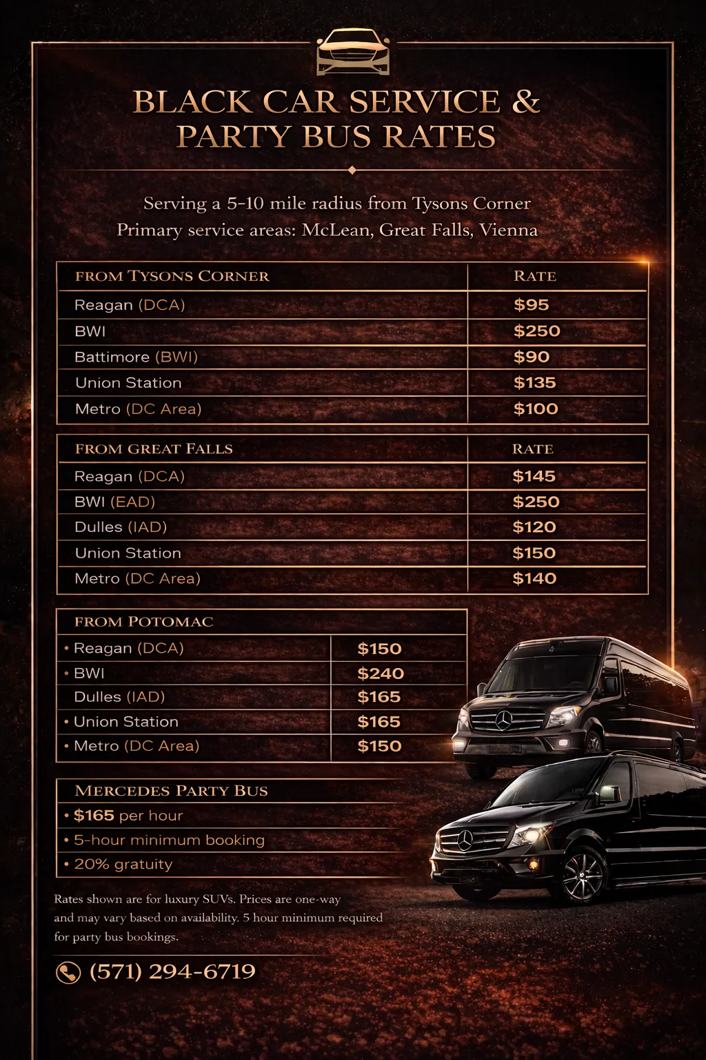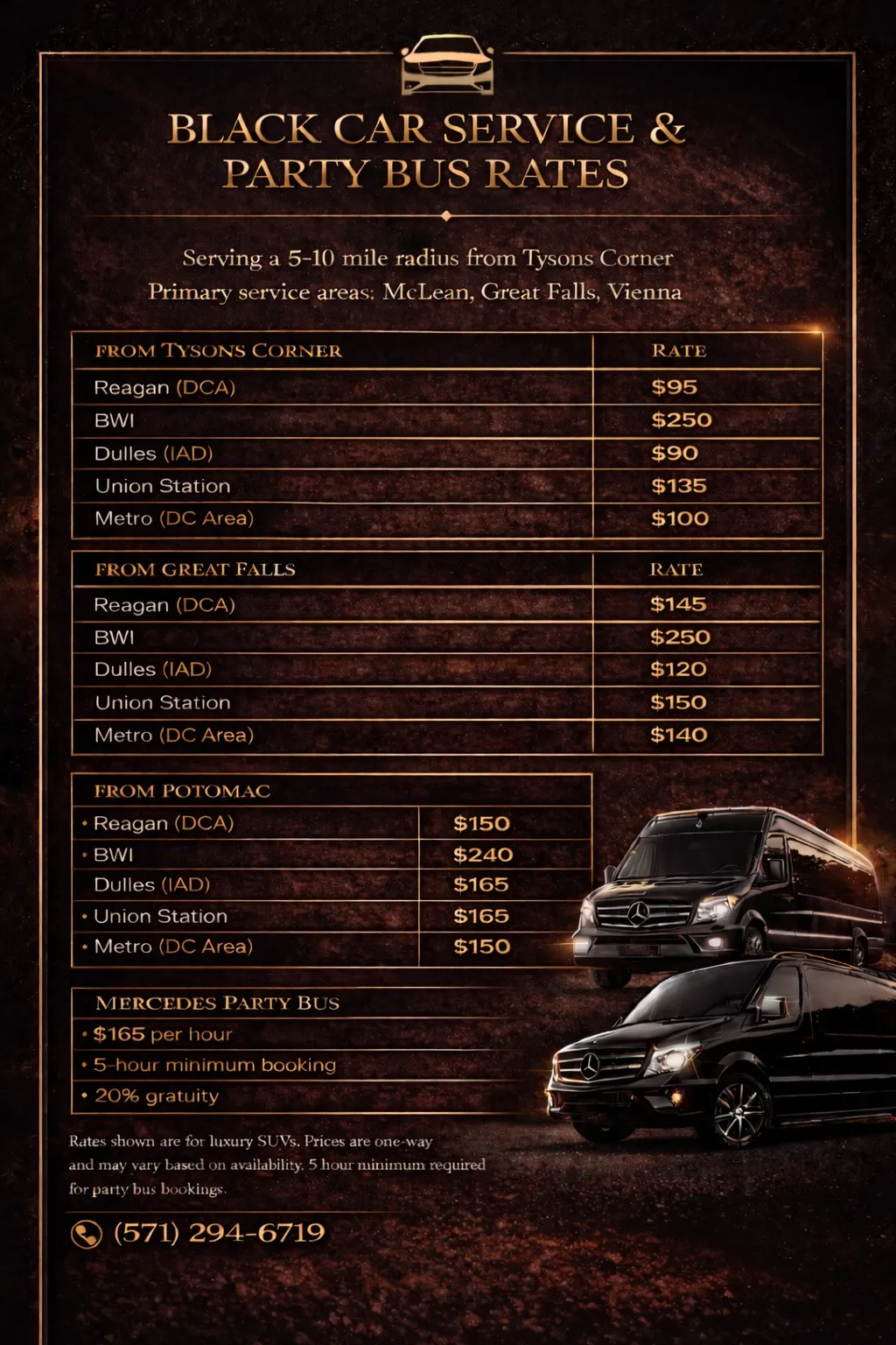 Yes. We provide reliable airport transfers to and from DCA, IAD, and BWI, with professional chauffeurs who track your flight for delays or early arrivals.